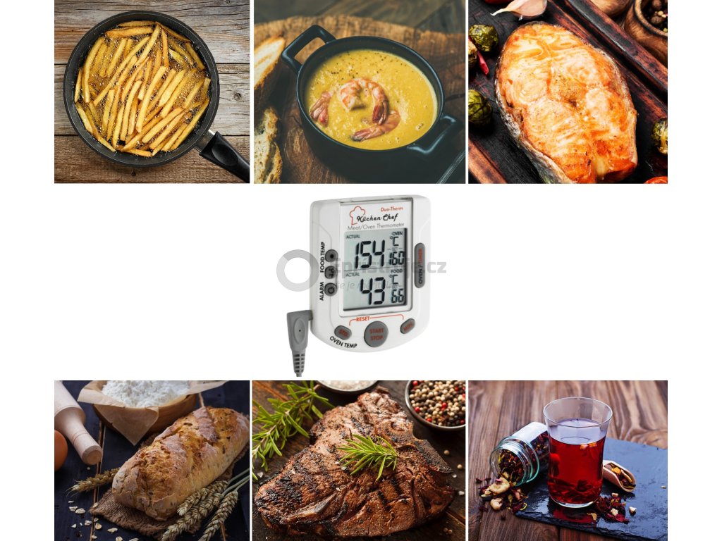 Umístěte nebo zavěste teploměr poblíž trouby. Zařízení je snadno použitelné a snadno čitelné díky přehlednému displeji. KÜCHEN-CHEF je také ideální pro vaření při nízkých teplotách.