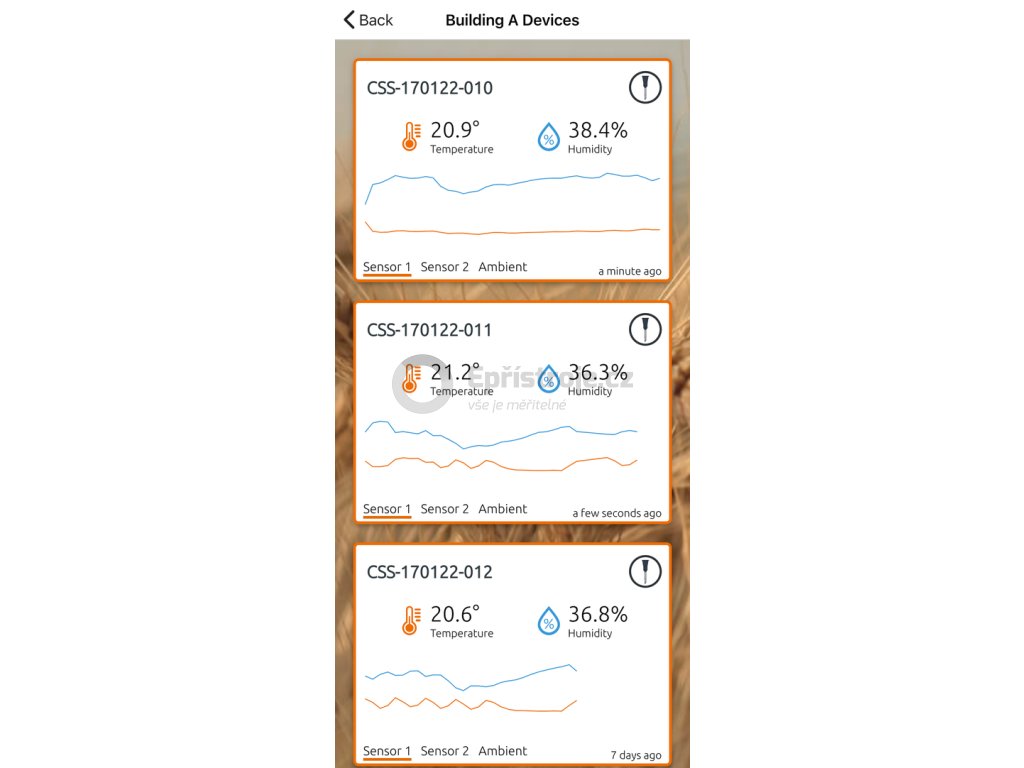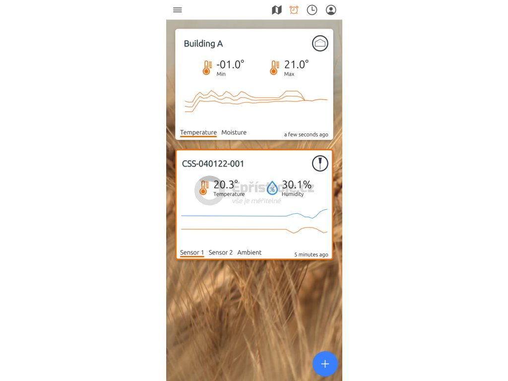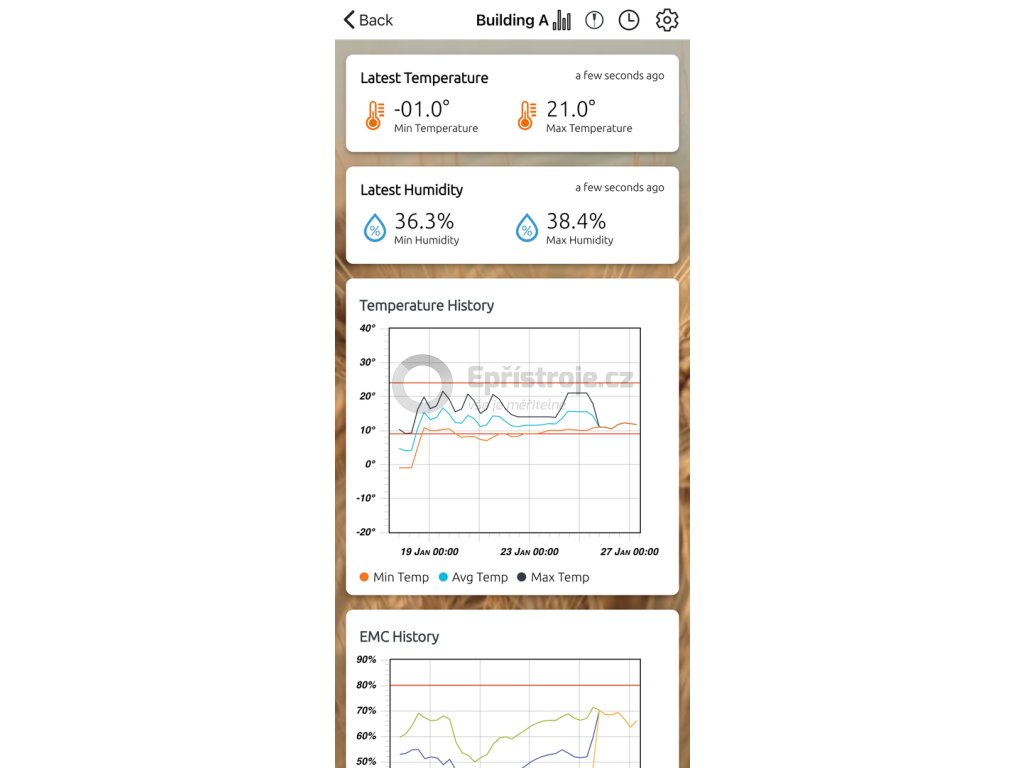 Máte několik měřičů teploty-vlhkosti v jedné budově? Bez obav. S aplikací AgroLog můžete vytvářet budovy a vkládat více zařízení pod jednu "střechu". Budete tak mít na první pohled celkový přehled o vlhkosti a teplotě budovy a na jednom místě podrobná data všech vašich zařízení.