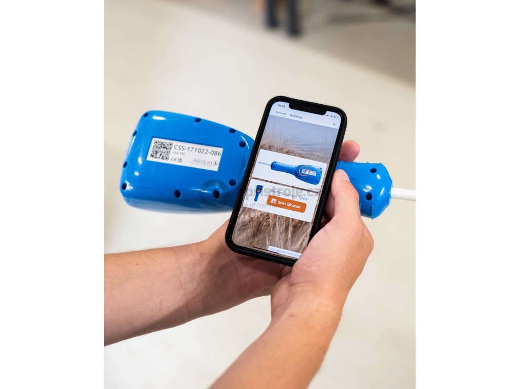 Zapněte bezdrátový senzor Spear stisknutím centrálního tlačítka. Do telefonu si stáhněte aplikaci AgroLog naskenováním QR kódu, který najdete v návodu. |