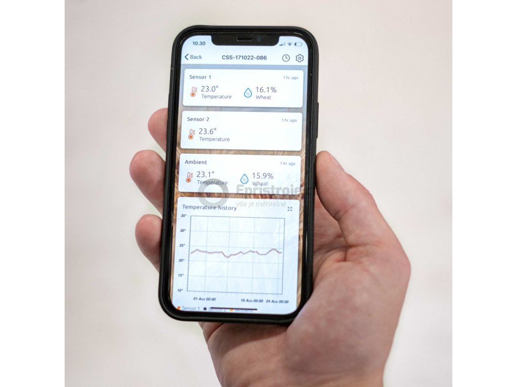 Zemědělský tyčový vlhkoměr a teploměr na seno, obilí, brambory, dřevní štěpku AgroLog CSS-TM, délka sondy 168 cm - ideální pro měření teploty a vlhkosti sena, brambor, řepy, ječmene, dřevní štěpky a obilovin. Vhodný k použití i v malých silech. AgroLog CSS-TM je bezdrátový měřící přístroj s podporou GSM, který přesně monitoruje teplotu a vlhkost skladovaných plodin a dalších materiálů. Naměřené hodnoty jsou zobrazovány v aplikaci AgroLog. Aplikace AgroLog zasílá upozornění při dosažení kritických prahových hodnot, a tak snižuje rizika poškození skladovaného zboží a zabraňuje ztrátám jeho hodnoty.