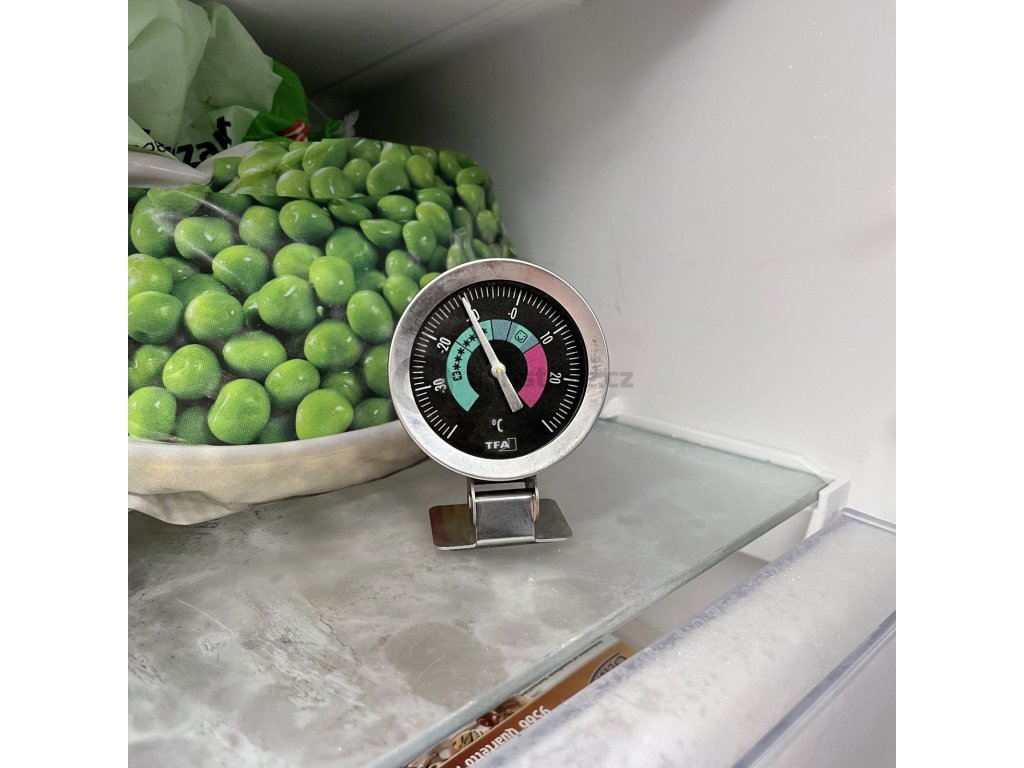 Teploměr je připraven k použití nejen v lednici, ale i v mrazničkách. Měří teploty od -40 °C do +30 °C.