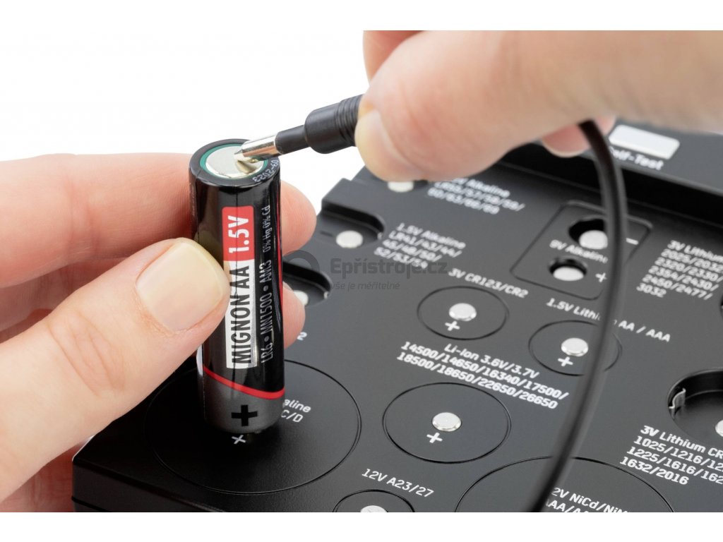 - Spolehlivý tester baterií a akumulátorů běžných velikostí