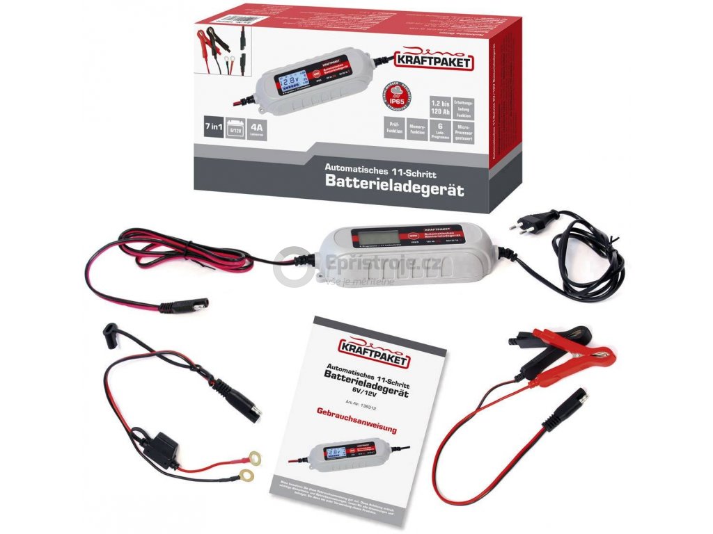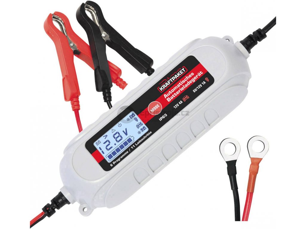Plně automatická mikroprocesorem řízená nabíječka s 4-stupňovou nabíjecí charakteristikou pro použití na osobních automobilech (12V) a motocyklech (6V)