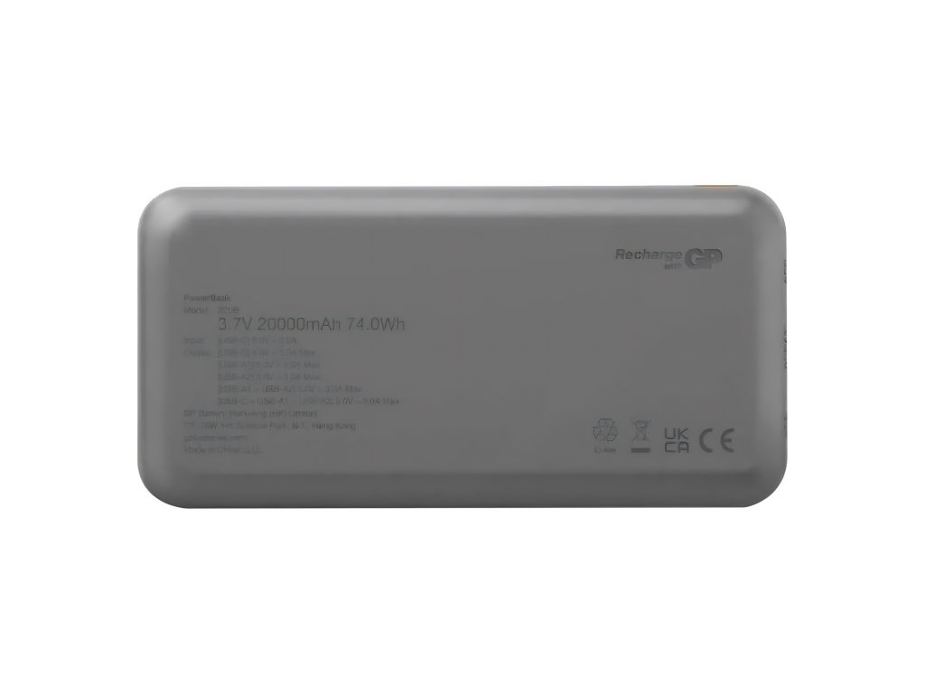 Objevte GP powerbanku, která spojuje výkon, styl a praktičnost. S kapacitou 20 000 mAh nabije až tři zařízení najednou – např. telefon, sluchátka či chytré hodinky.