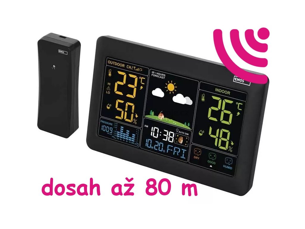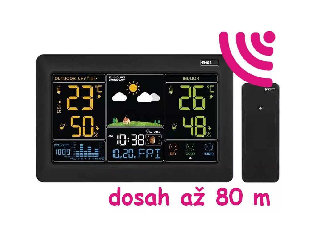 Barevná bezdrátová meteostanice Emos E0387 | dosah až 80 m | barometr | až 3 čidla