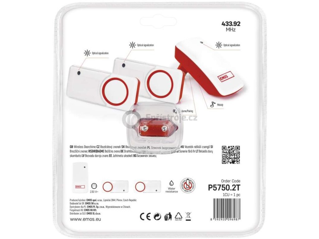 Bezbateriový domovní bezdrátový zvonek Emos P5750.2T | dosah až 150 m | 2 tlačítka