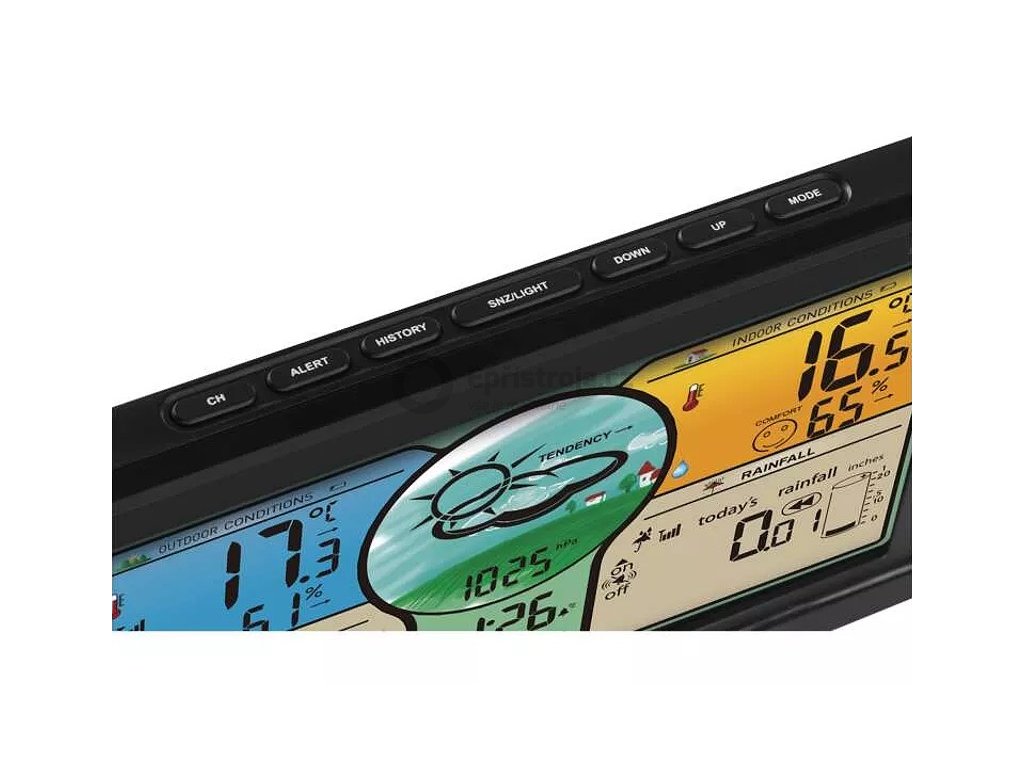 Součástí nadstandardní meteostanice je čidlo, které v sobě kombinuje srážkoměr s měřením teploty a vlhkosti. Samozřejmostí je také zobrazení trendu teploty a vlhkosti.