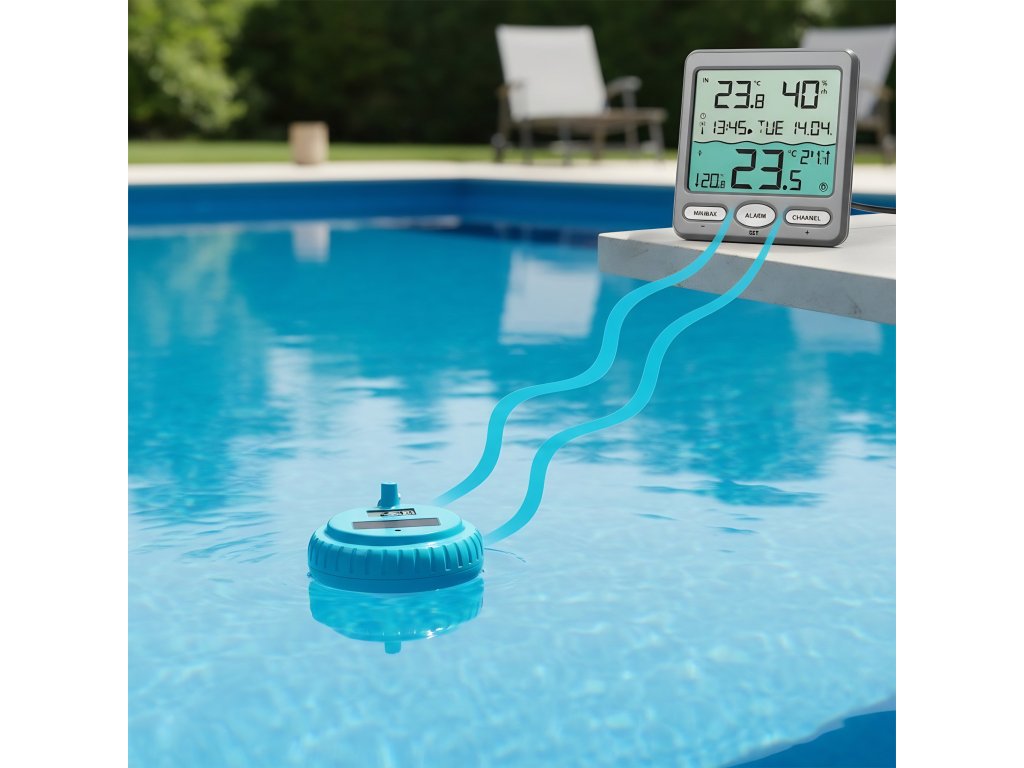 Plovoucí bazénové teplotní čidlo s přímým odečtem teploty vody a solárním panelem