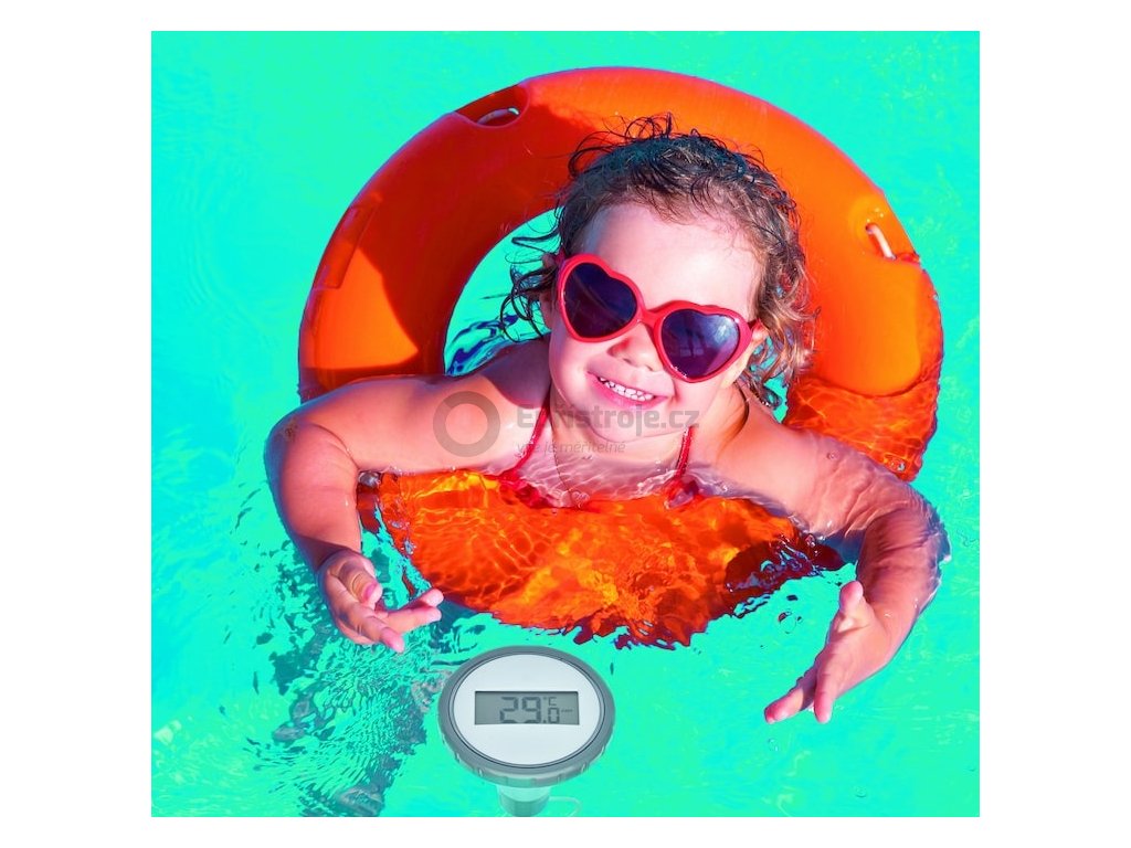 Plovoucí bazénový vysílač přenáší informace přímo a bezdrátově do základní stanice, která zároveň měří i vnitřní teplotu, takže máte na jednom displeji všechny informace. Snímač měří teplotu vody v hloubce 120 mm.
