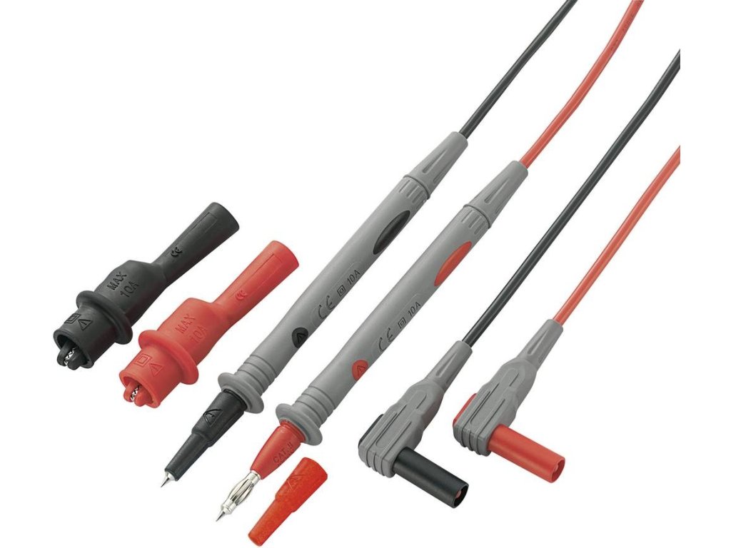 - Ø/typ zástrčky: bezpečnostní banánky na měřicí hroty 4 mm s lamelami a samostatnými krokosvorkami