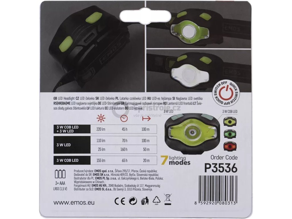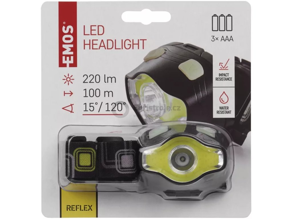 3W COB LED + LED čelovka Emos P3536, 220 lm, 100 m, 3× AAA