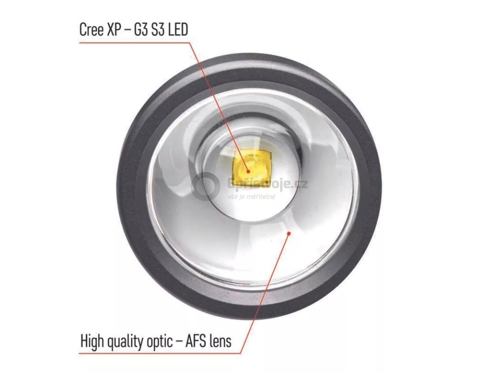 Svítilna je praktická a kvalitní. Díky unikátní patentované technologii AFS lens (Advanced Focus System) využívající principu lomu světla, získáte ostrý kužel světla a zároveň rovnoměrnou intenzitu osvětlení. Tato svítilna je vybavena fokusem, který vám umožní plynule přejít z širokého kuželu světla do úzkého intenzivního paprsku světla.
