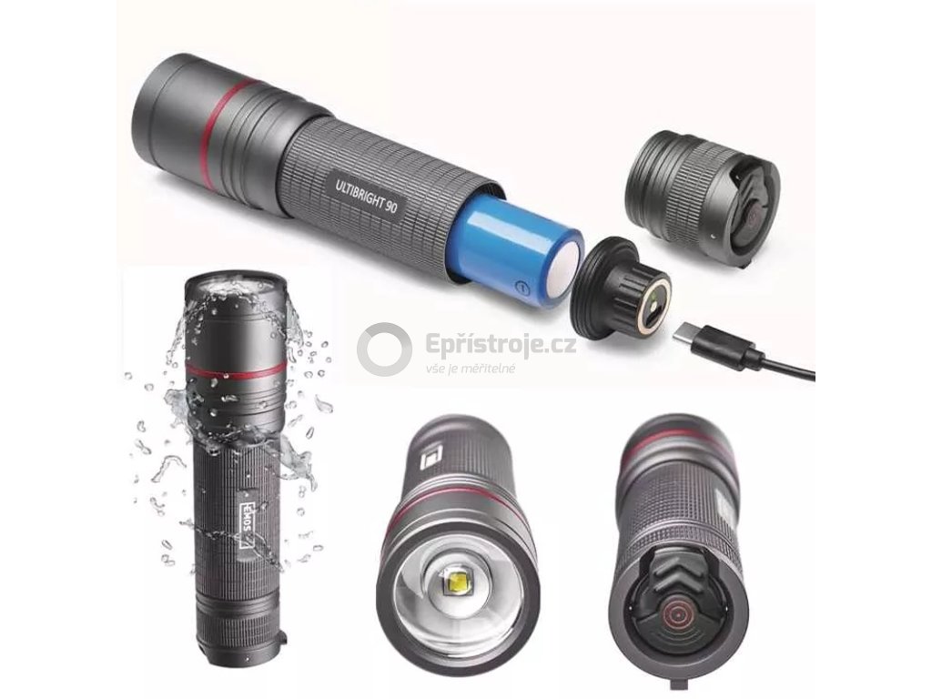 Kompaktní svítilna Ultibright 90 je praktickým doplňkem pro každou činnost, při které si potřebujete pohotově a spolehlivě posvítit. O dostatečný dosvit až 280 metrů a světelný tok 1 200 lm se stará kvalitní LED chip CREE XML2 U3.