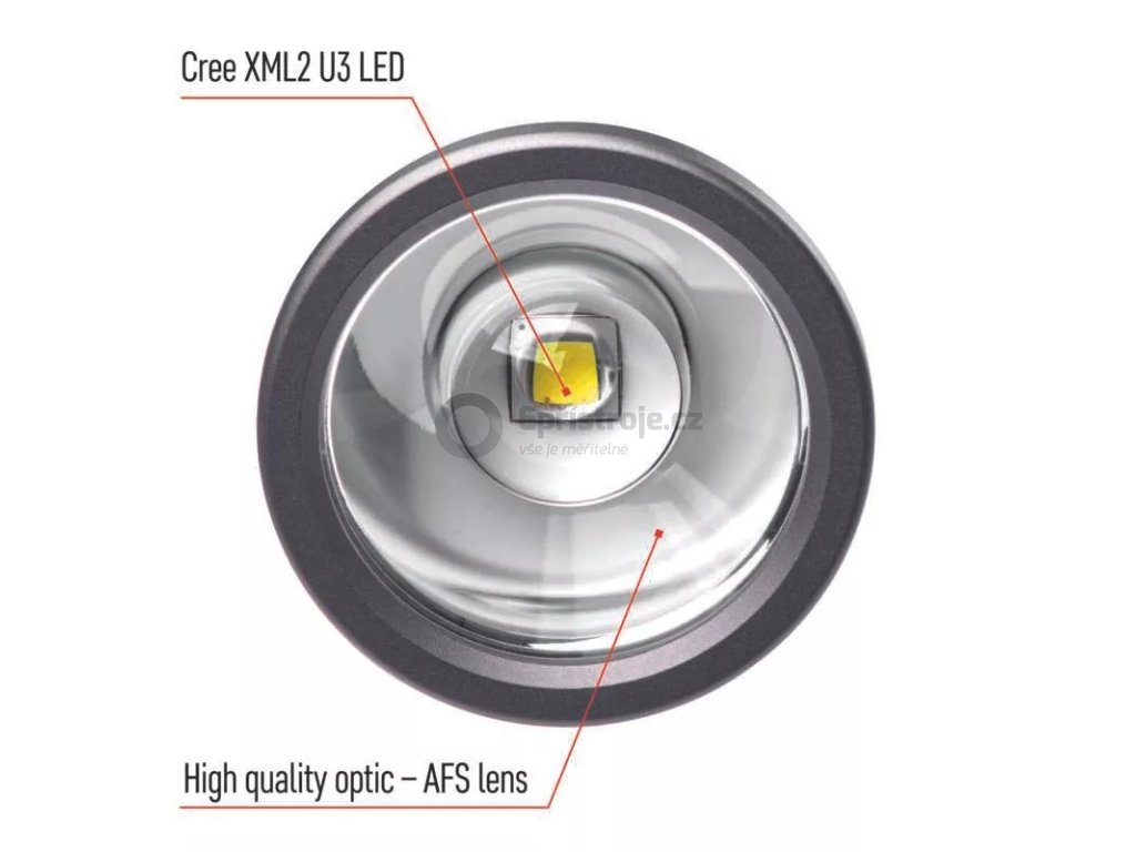 Svítilna je praktická a kvalitní. Díky unikátní patentované technologii AFS lens (Advanced Focus System) využívající principu lomu světla, získáte ostrý kužel světla a zároveň rovnoměrnou intenzitu osvětlení. Tato svítilna je vybavena fokusem, který vám umožní plynule přejít z širokého kuželu světla do úzkého intenzivního paprsku světla.