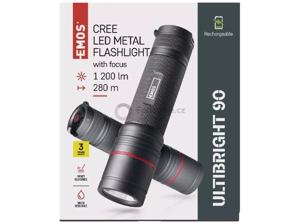 CREE LED nabíjecí kovová svítilna Ultibright 90 | Emos P3190 | 1200lm | 1x Li-Ion 26650