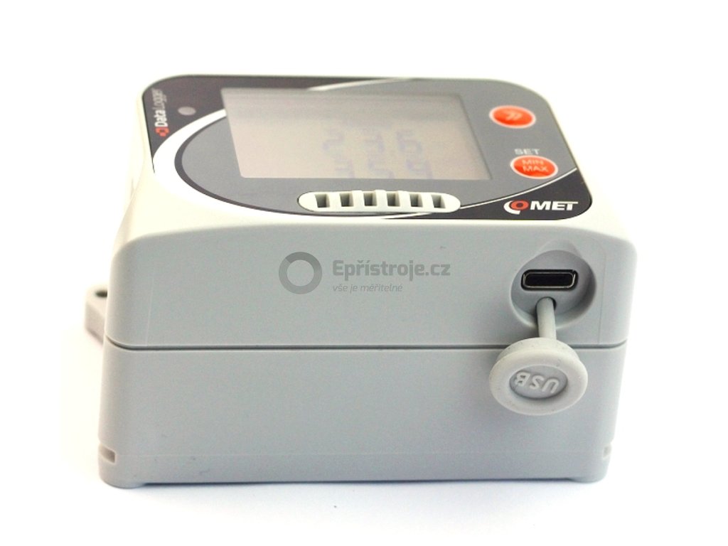 provedením a dlouhou odezvou na skokovou změnu měřené veličin v porovnání s přístroji s externí sondou. Senzor je umístěn pod mřížkou na boční straně dataloggeru. Zařízení se umísťuje přímo do měřeného prostoru.