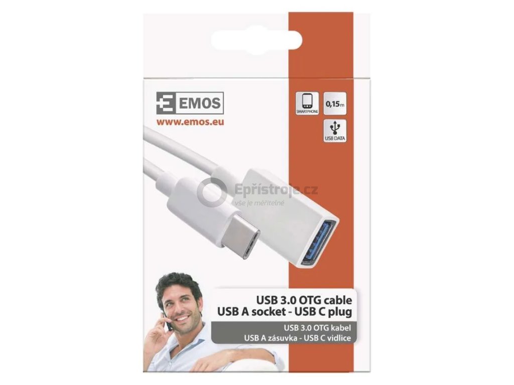 Datový OTG kabel USB-A 3.0 / USB-C 3.0 s funkcí redukce | Emos SM7054 | 15 cm | bílý