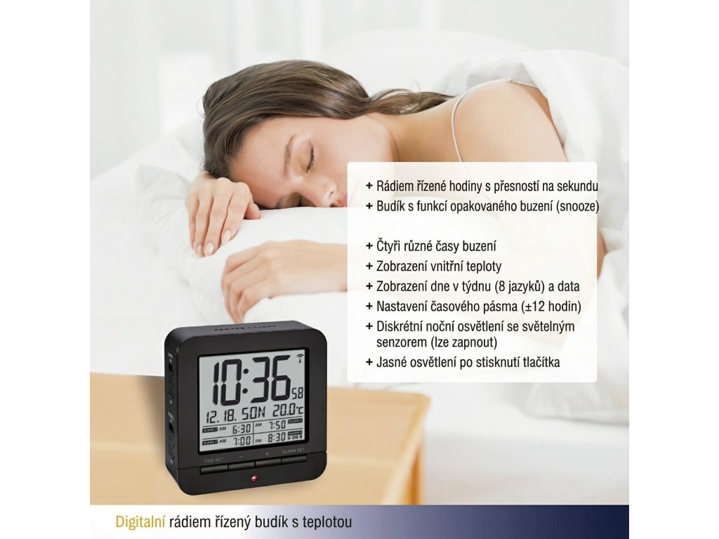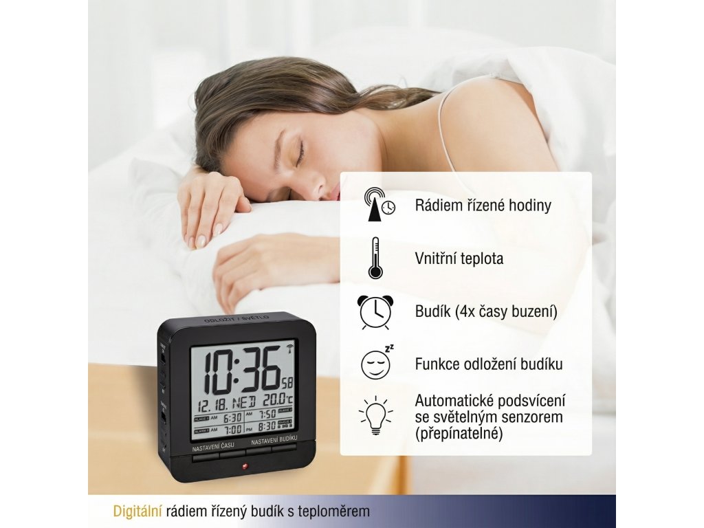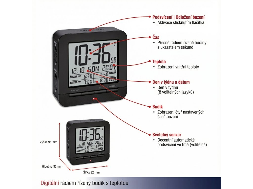 TFA 60.2536.01 | DCF digitální budík s měřením teploty - černý