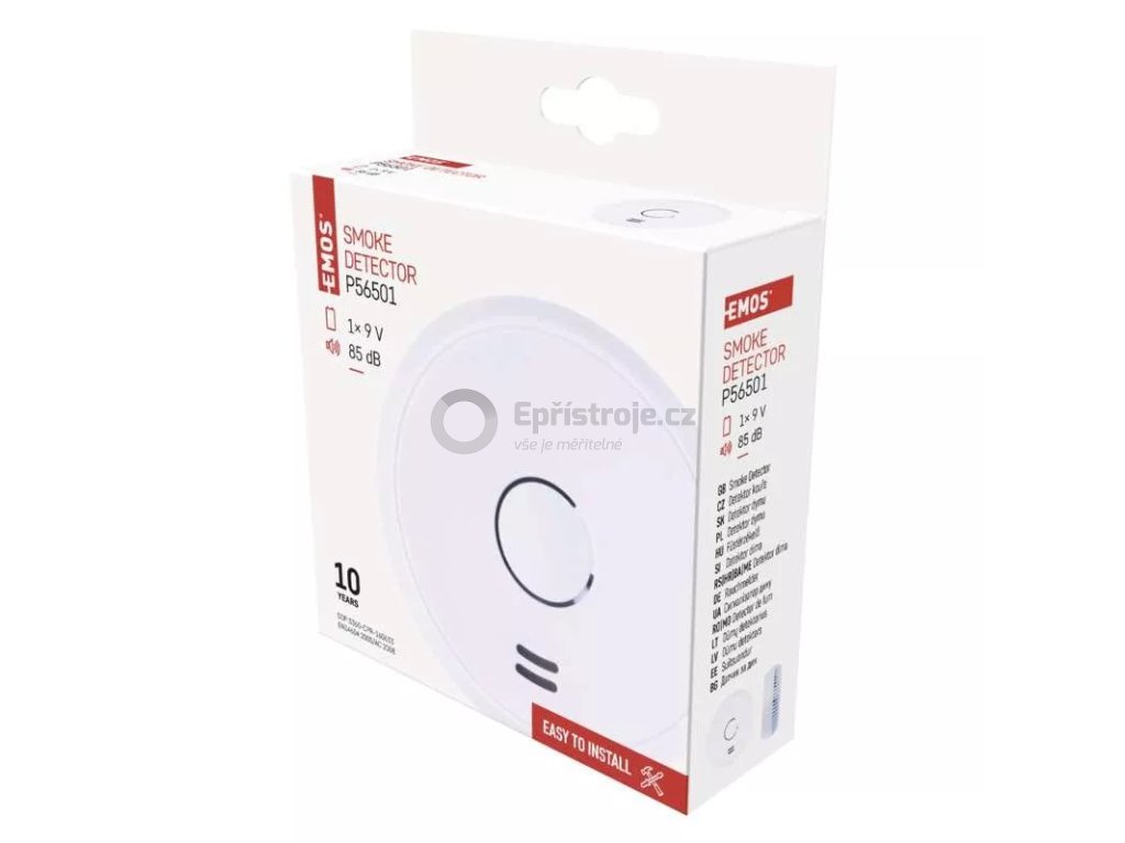 Každý detektor kouře obsahuje čidlo, které má omezenou životnost. Jakmile přijde jeho poslední hodinka, je nutné pořídit si úplně nový přístroj. EMOS GS536 vás udrží v bezpečí 10 let. Jestliže v průběhu zapomenete datum jeho expirace, připomene vám ho štítek na zadní straně – konkrétně nápis „zařízení nahradit:“.