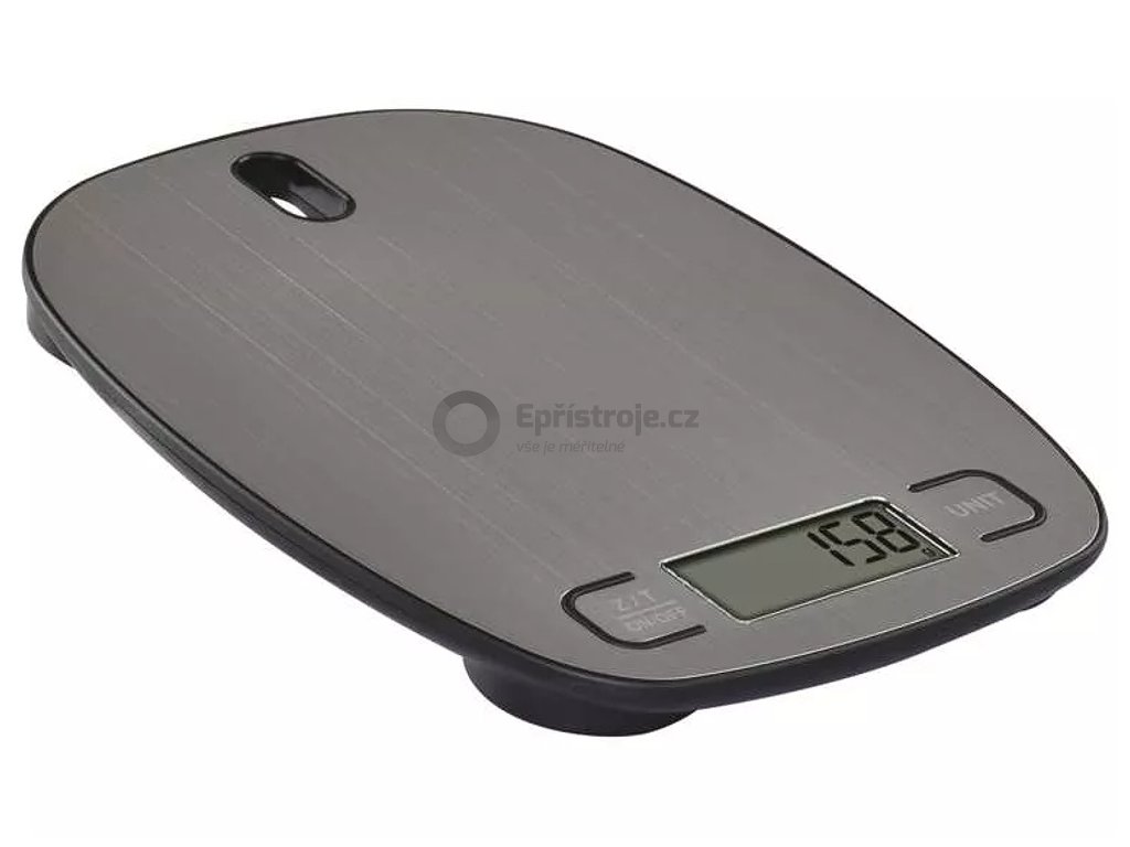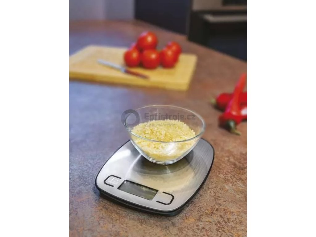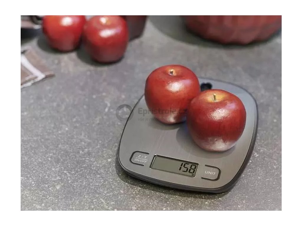 Praktická kuchyňská váha s nerezovým povrchem a dotykovými senzory s maximální váživostí do 10 kg.