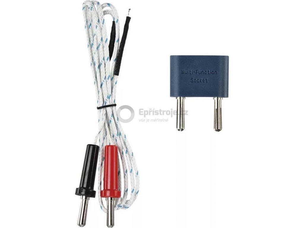 Součástí balení jsou měřicí hroty, redukce pro měření tranzistorů, teplotní sonda typu K a 9 V baterie.
