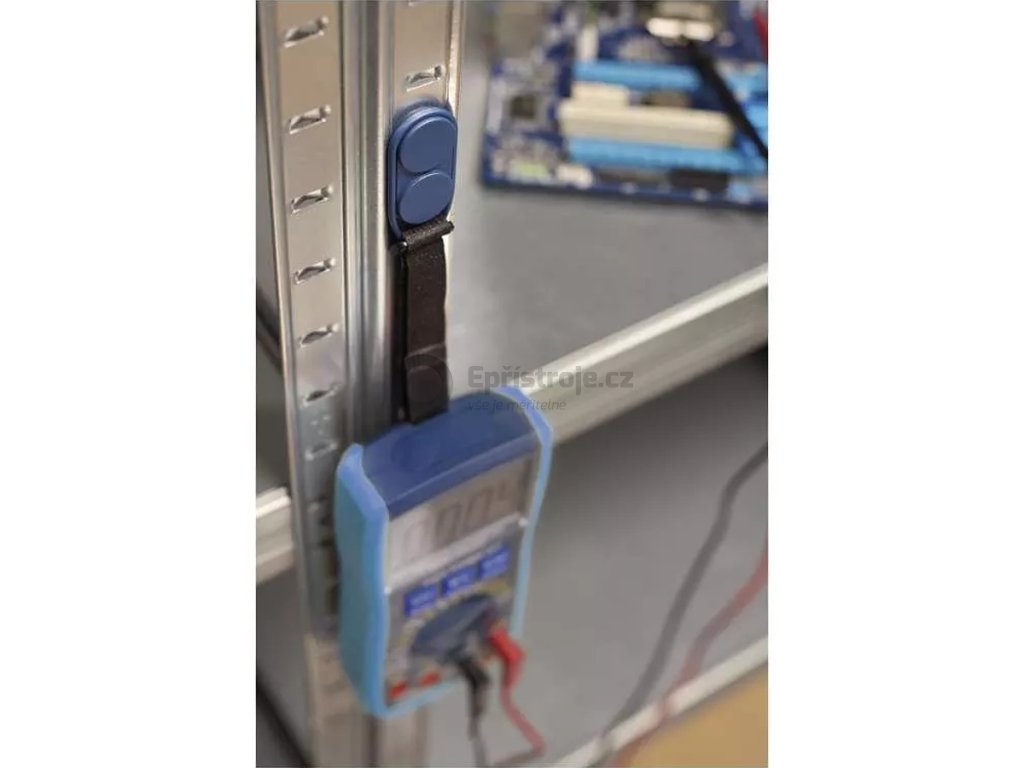 Díky závěsnému pásku vybavenému magnetem je možné přístroj přichytit k libovolnému kovovému podkladu a mít jej neustále po ruce. Praktický výklopný stojánek na zadní straně přístroje pak umožňuje jeho umístění ve vertikální poloze na pracovním stole.
