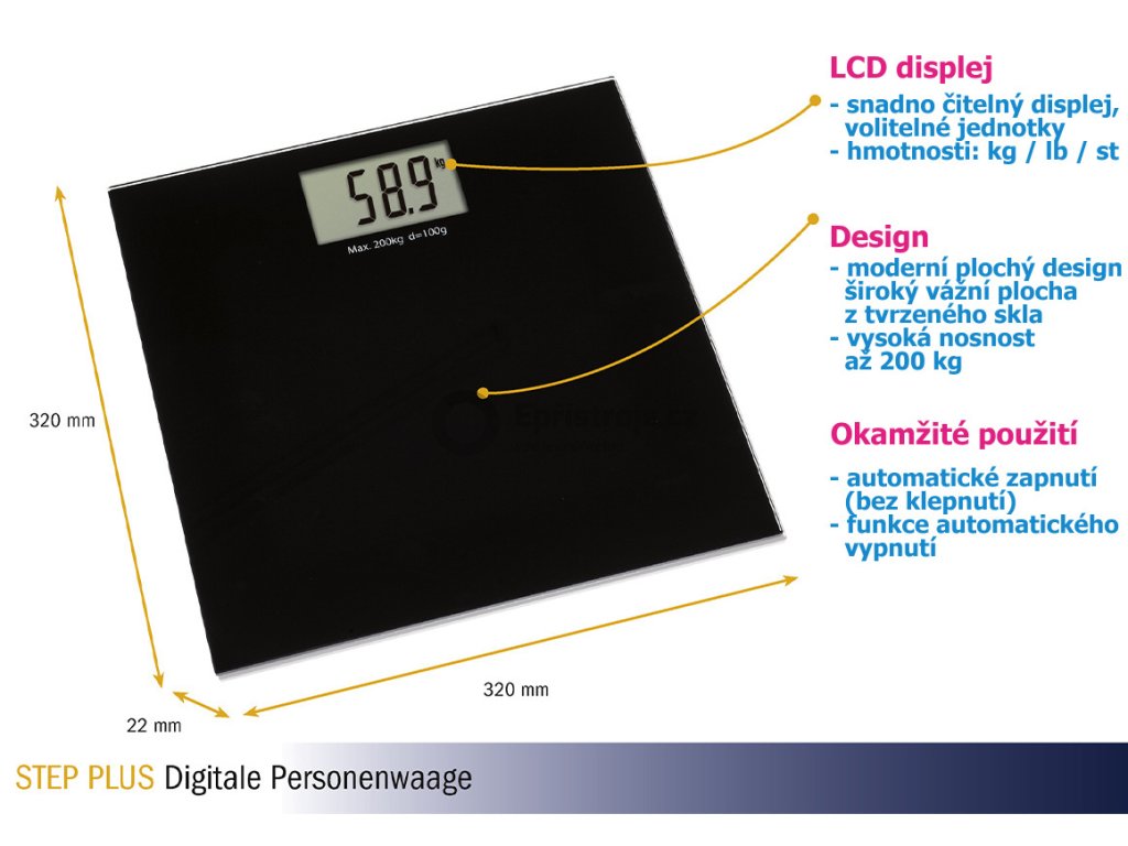 | Povrch osobní váhy | speciální tvrzené bezpečnostní sklo |