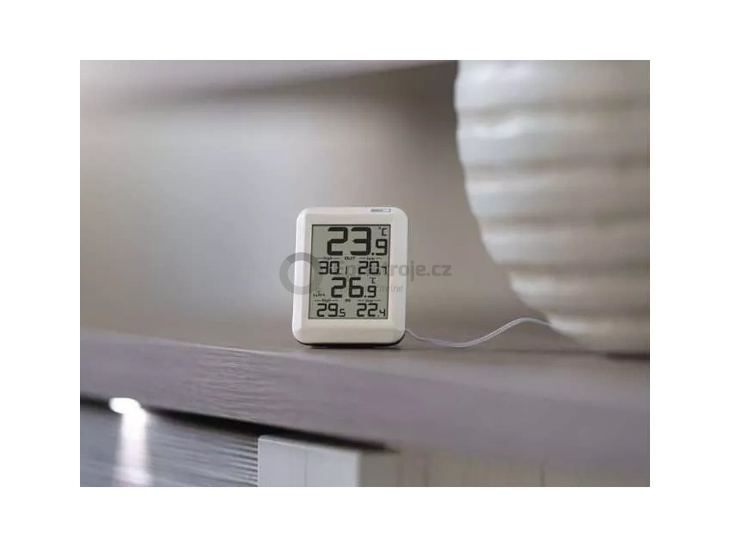 Hledáte zařízení bez zbytečných funkcí a tlačítek navíc? Pak tento produkt jistě ocení všichni, kterým stačí znát pouze základní hodnoty měření bez zbytečných kudrlinek. Žádná složitá tlačítka a programy. Tento drátový teploměr potěší hlavně tím, co je nejdůležitější – a to přesným měřením teploty v interiéru i exteriéru s rozlišením 0,1 °C. Navíc také kontinuálně zaznamená maximální a minimální vnitřní a venkovní teplotu.