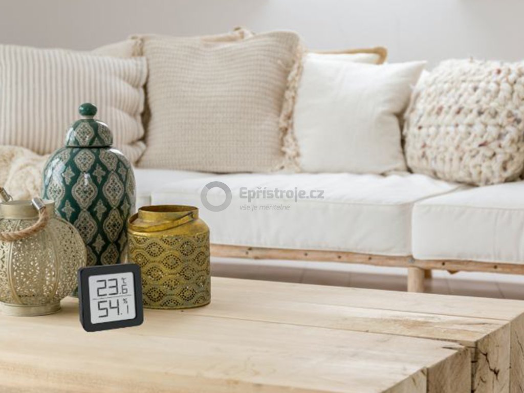 Jednoduchý a kompaktní design termo-vlhkoměru se hodí do každého obývacího pokoje.