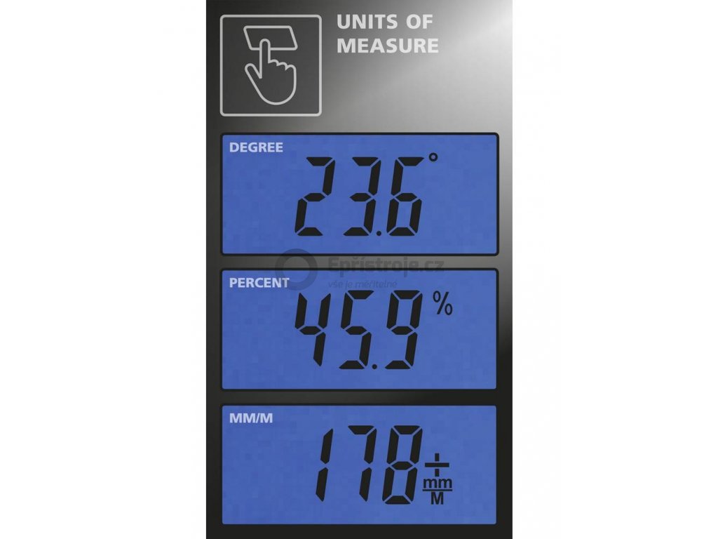 Digitální kapesní úhloměr, se kterým změříte jakýkoliv náklon. Integrované magnety pro uchacení na magnetické materiály. Přesnost ±0,1° (při 0° nebo 90°).