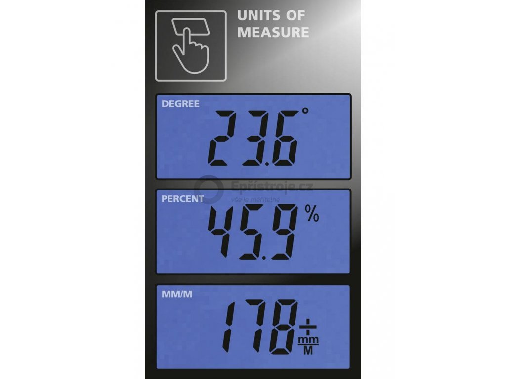 Digitální kapesní úhloměr, se kterým změříte jakýkoliv náklon. Integrované magnety pro uchacení na magnetické materiály. Přesnost ±0,1° (při 0° nebo 90°).