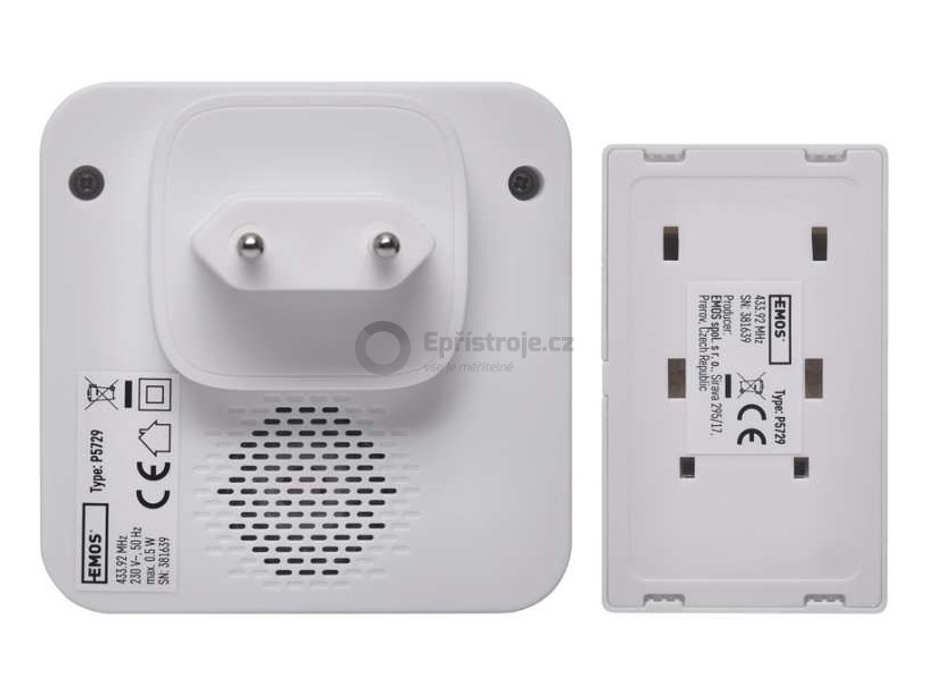 Domovní bezdrátový zvonek Emos P5729, až 180 m, bílá