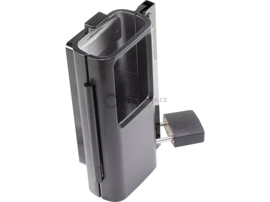 Držák se na stěnu připevní pouze dvěma šrouby. V případě potřeby stačí sundat zámek, odklopit závoru směrem nahoru, otevřít dvířka držáku a uložit do něj datalogger. Pak můžete datalogger bezpečně uzamknout díky zámku, který je součástí dodávky. Bez velkých nákladů tak předejdete nechtěnému přemístění , případně možné krádeži.