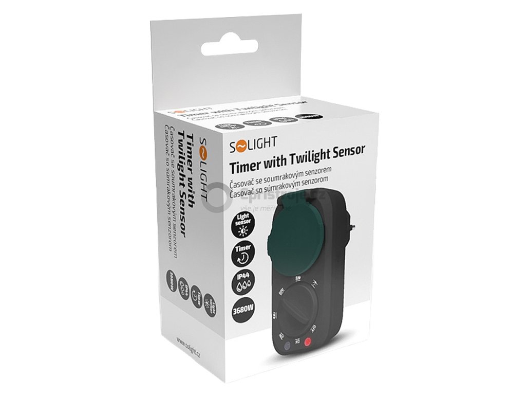 DT34A | Mezi-zásuvka s časovačem a soumrakovým spínačem Solight, 3680 W