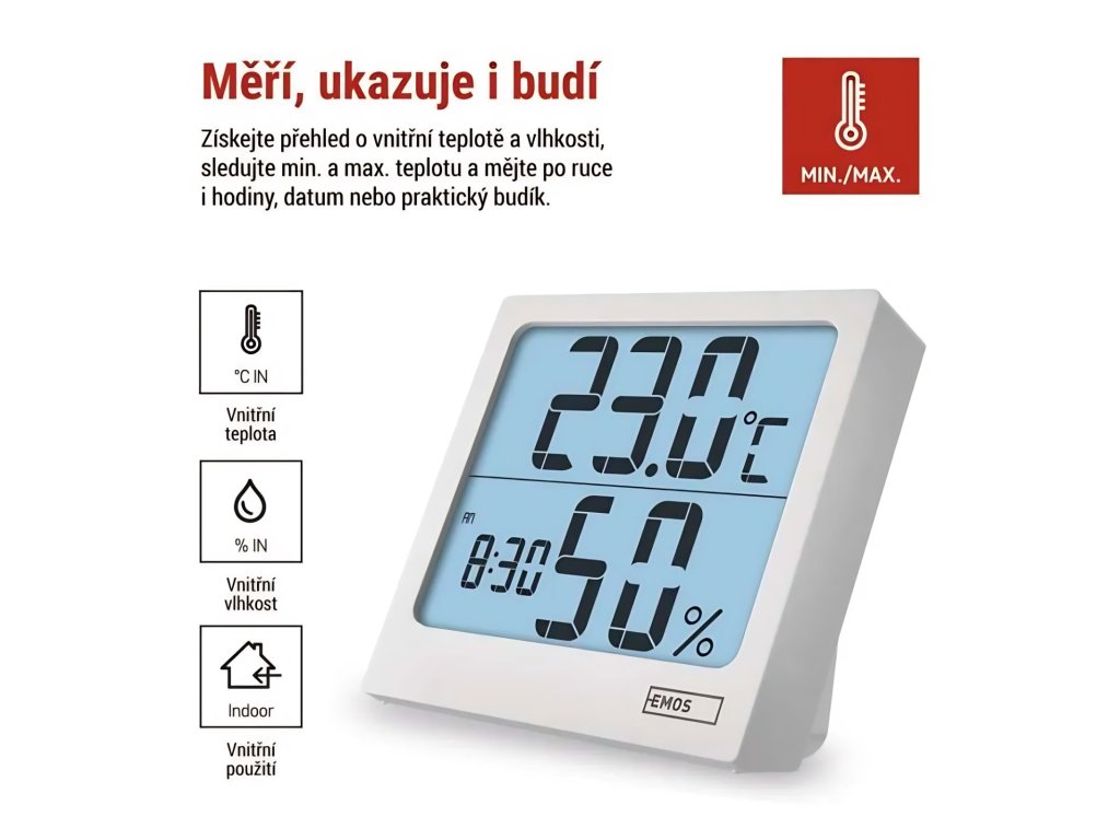 EMOS E0114 | Digitální Teploměr s vlhkoměrem | MIN. MAX. funkce