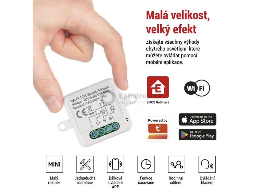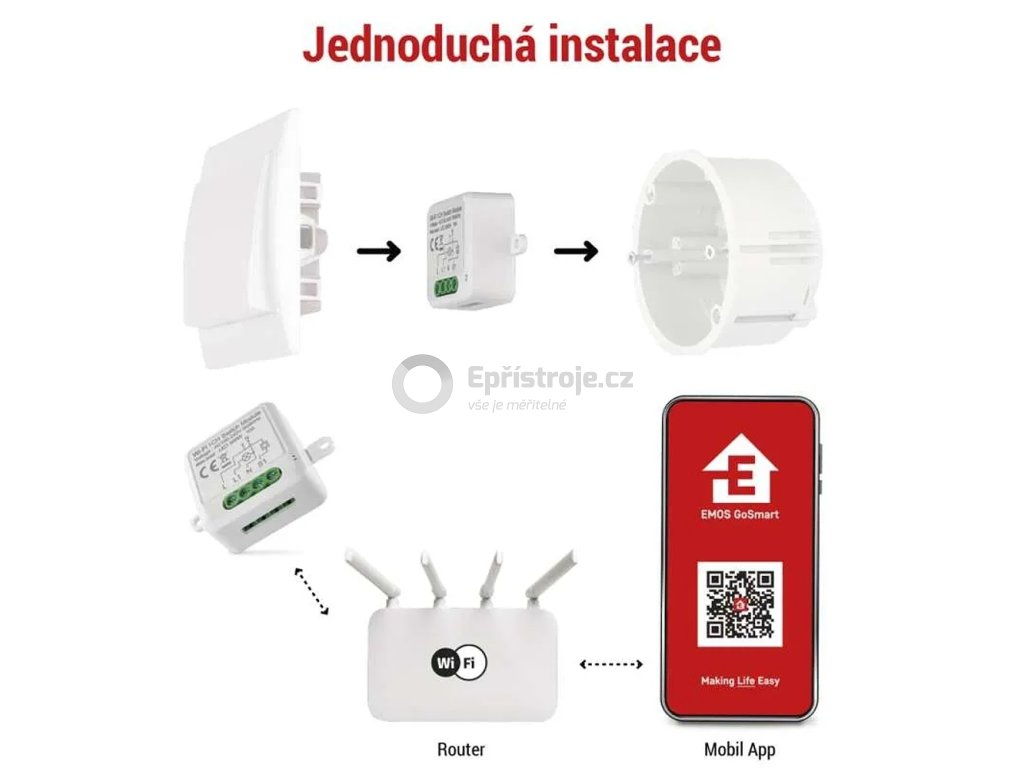 Modul připojte do vaší Wi-Fi sítě a spárujte ho s mobilní aplikací EMOS GoSmart, která je dostupná pro Android i iOS. Díky Wi-Fi protokolu, který se připojí i internetu přes router, dokážete realizovat vzdálené ovládání a monitorování vašich zařízení.