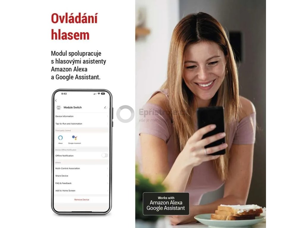 - Kompatibilní s hlasovými asistenty Google Assistant a Amazon Alexa