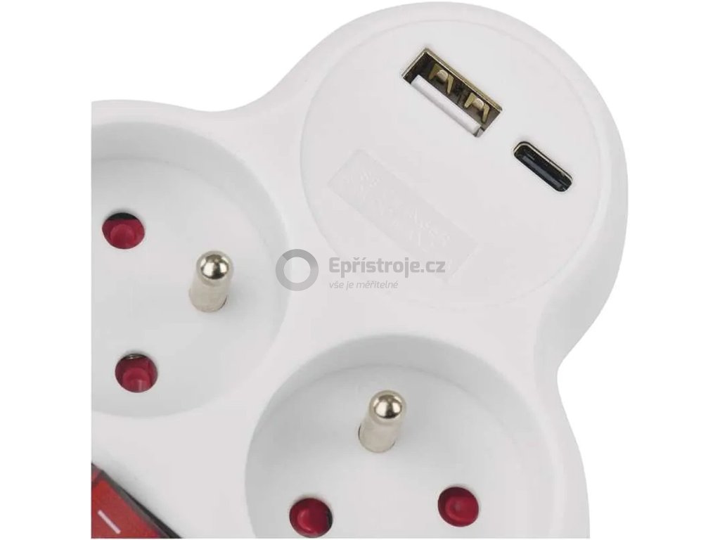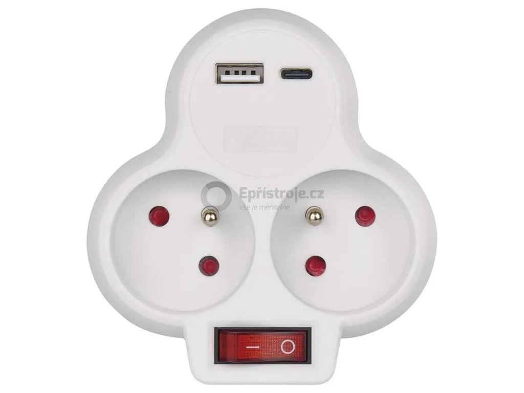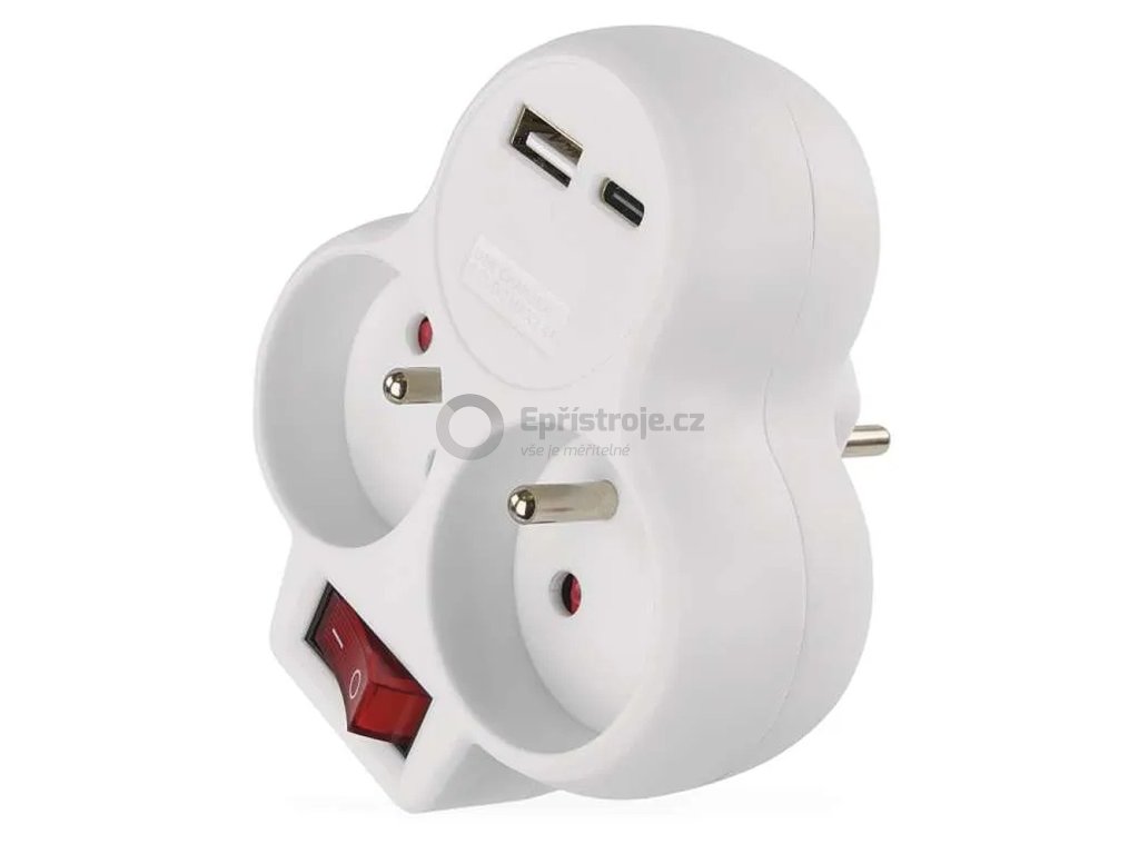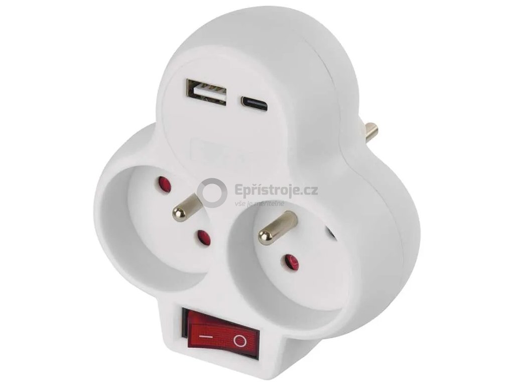EMOS P0073 | 2x násobná rozbočovací zásuvka s USB A+C nabíječkou 17W a vypínačem | bílá| CZ zásuvka