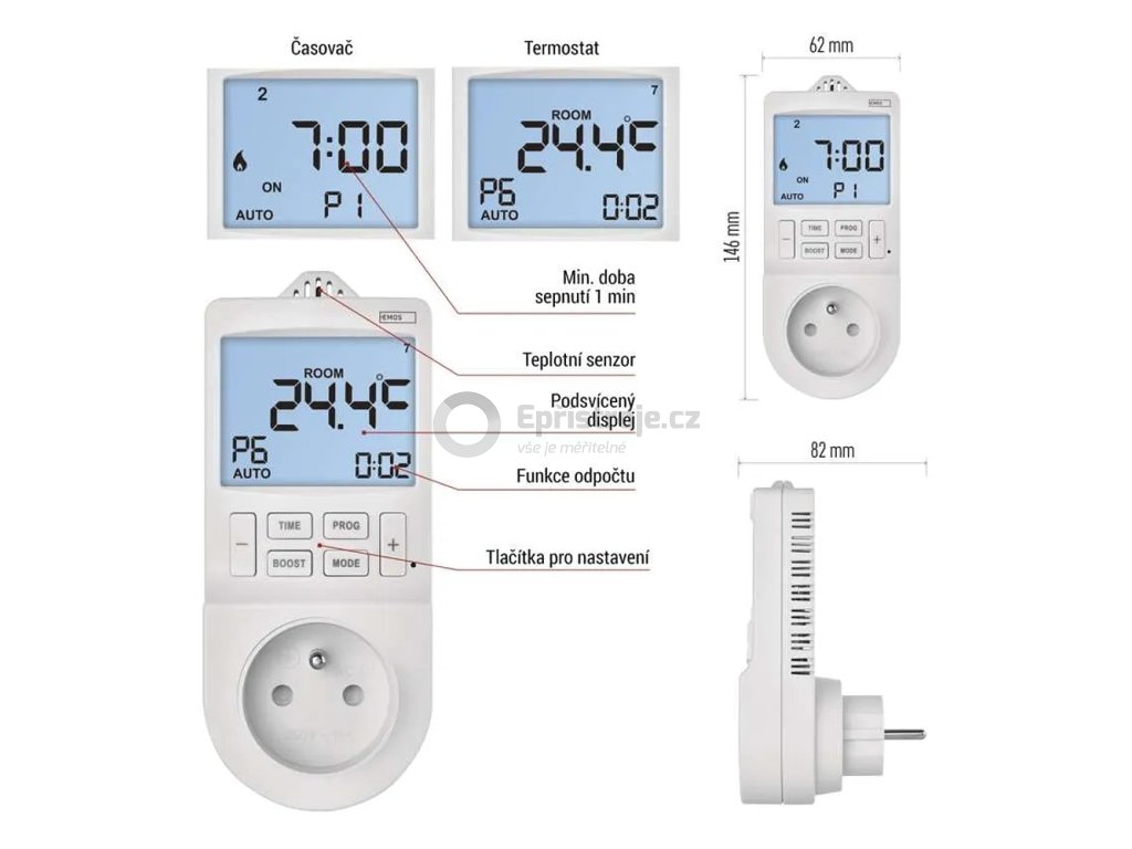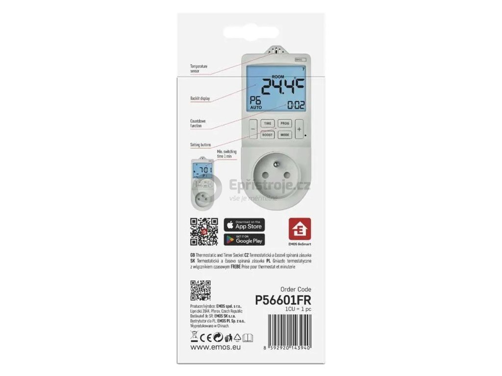 GoSmart termo zásuvka s časovačem | EMOS P56601FR, P56601SH