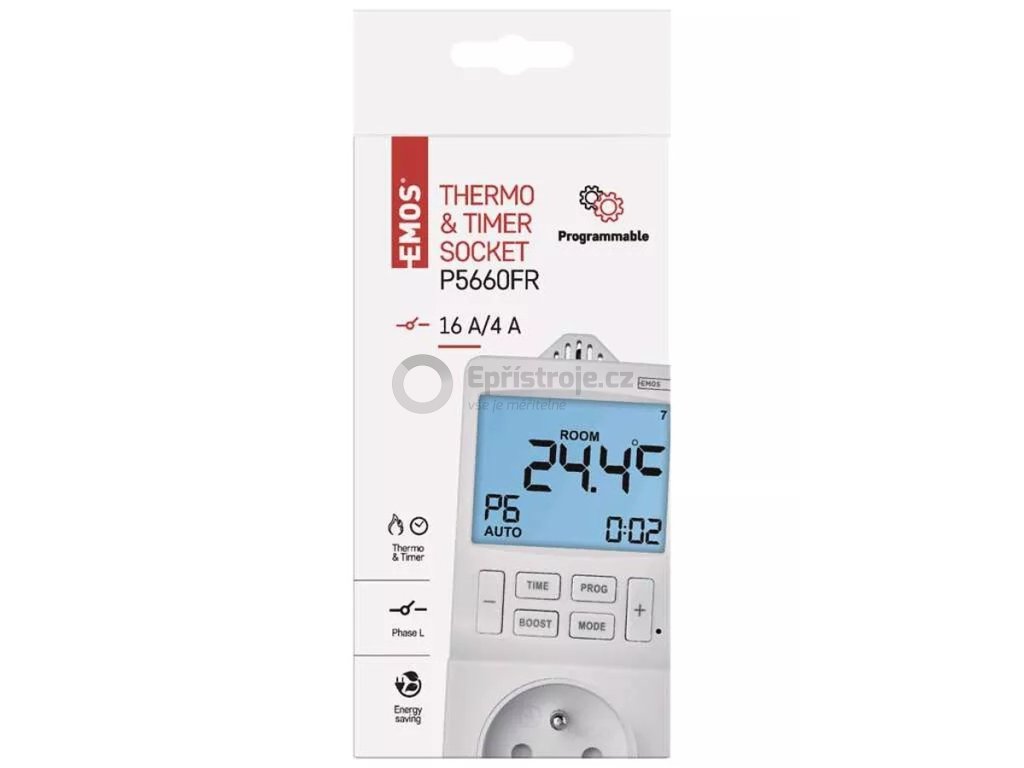 EMOS P5660FR | Termostat do zásuvky s funkcí digitálního časovače 2v1