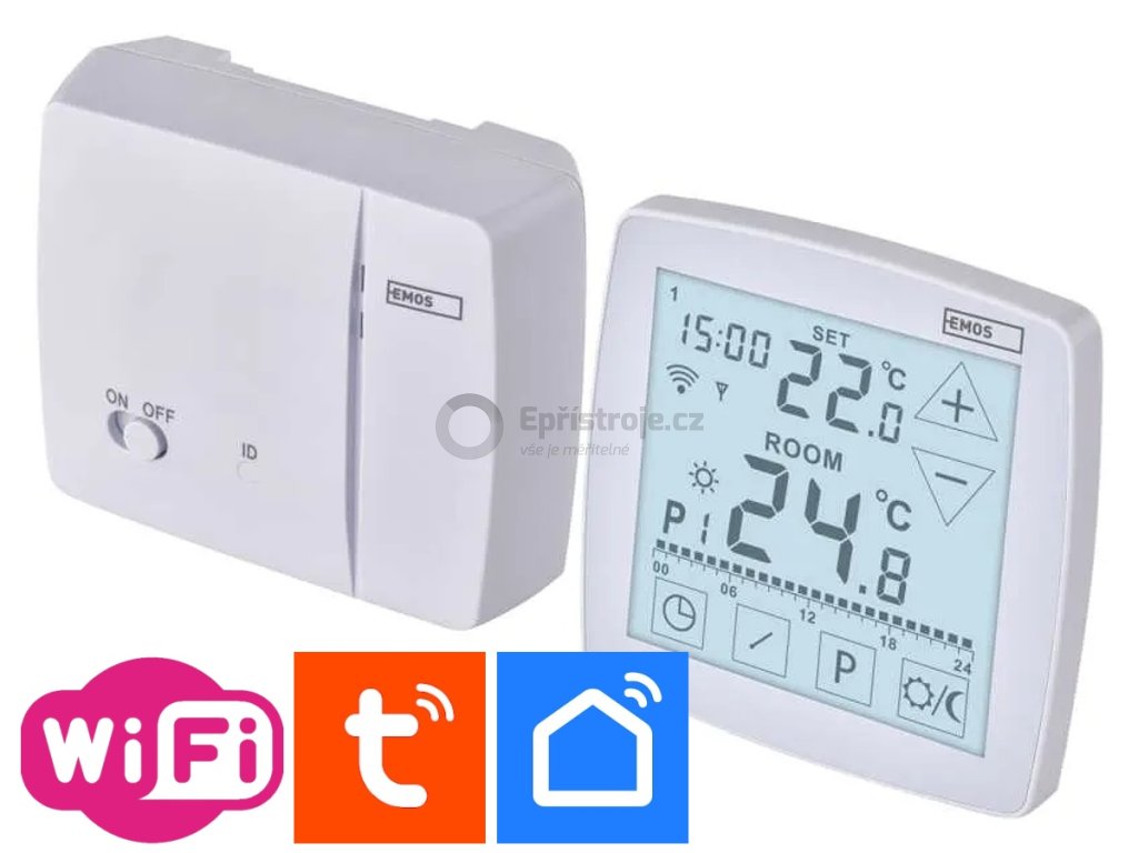 | obsah balení | termostat (vysílač, displejová nastavovací část) přijímač (slouží pro ovládání kotle nebo klimatizačního zařízení) USB napájecí adaptér USB-C kabel 2x šroub, 2x hmoždinky |
