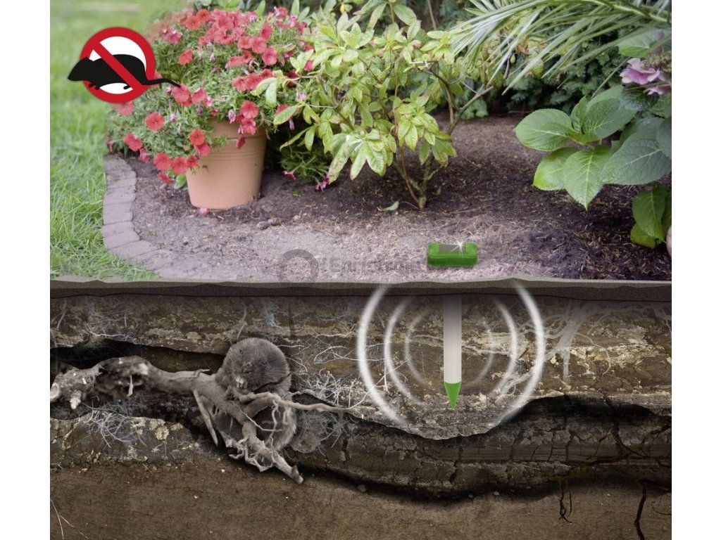 Noční můra každého zahrádkáře: hraboši, krtci a jejich krtince. Zabraňte vzniku nevzhledných krtinců a zajistěte si rovný trávník. Nízkofrekvenční vibrace a tóny odpuzovače spolehlivě vyvolá u krtků a hrabošů i mravenců stejné chování jako při zemětřesení. Nepůsobí na člověka ani na domácí zvířata. Celé zařízení jednoduše zasuňte do země.