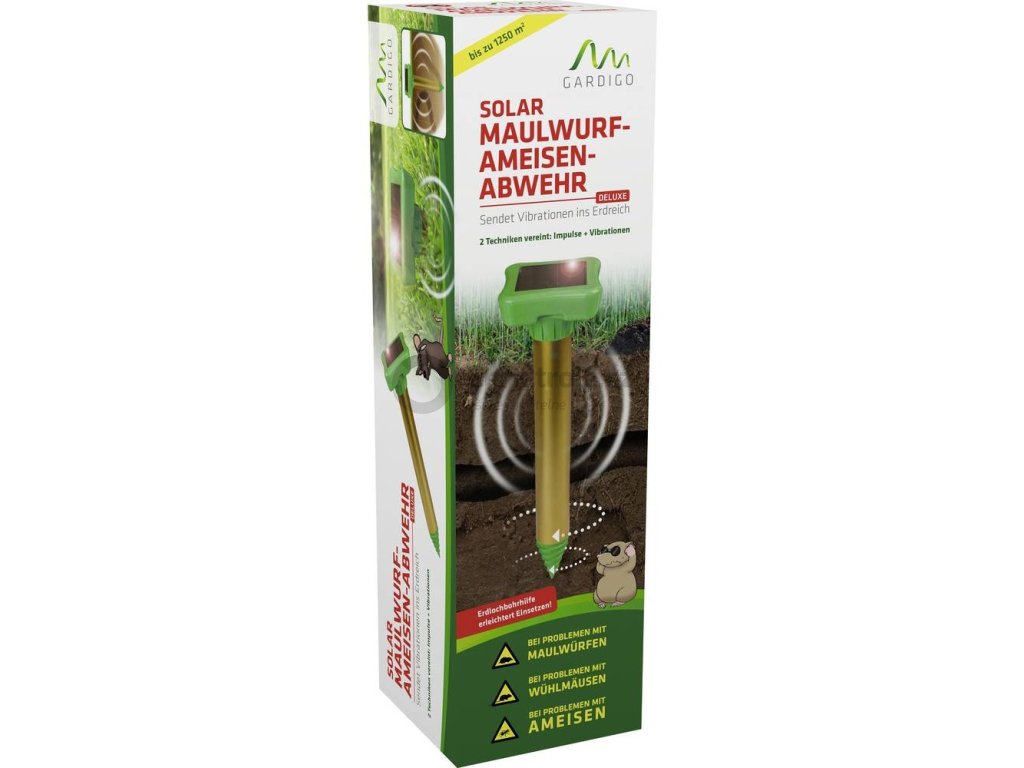 Gardigo Solar DeLuxe, odpuzovač krtků, hrabošů a mravenců | vibrace a tóny | působení až 1250 m²