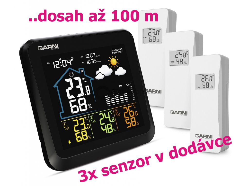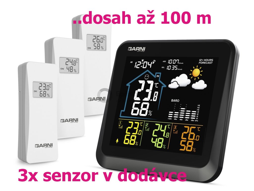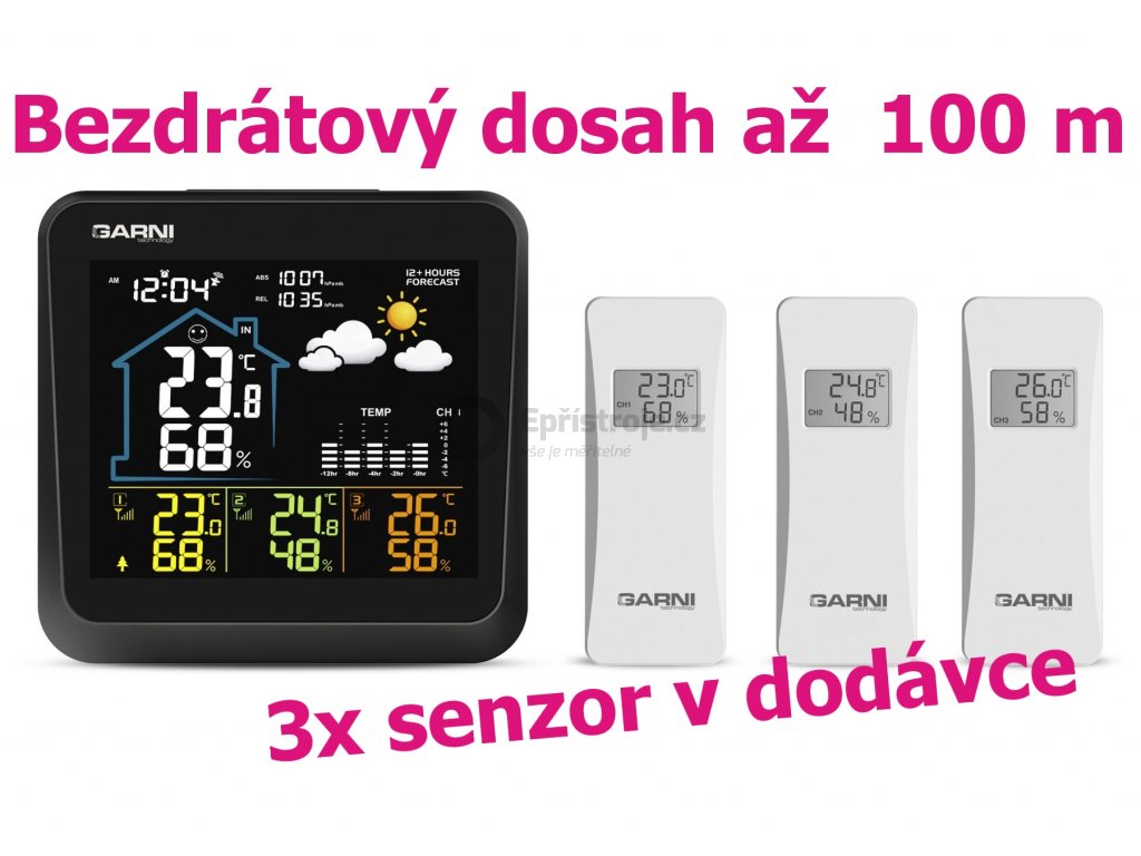 - 3 bezdrátová čidla GARNI 052H jsou součástí balení