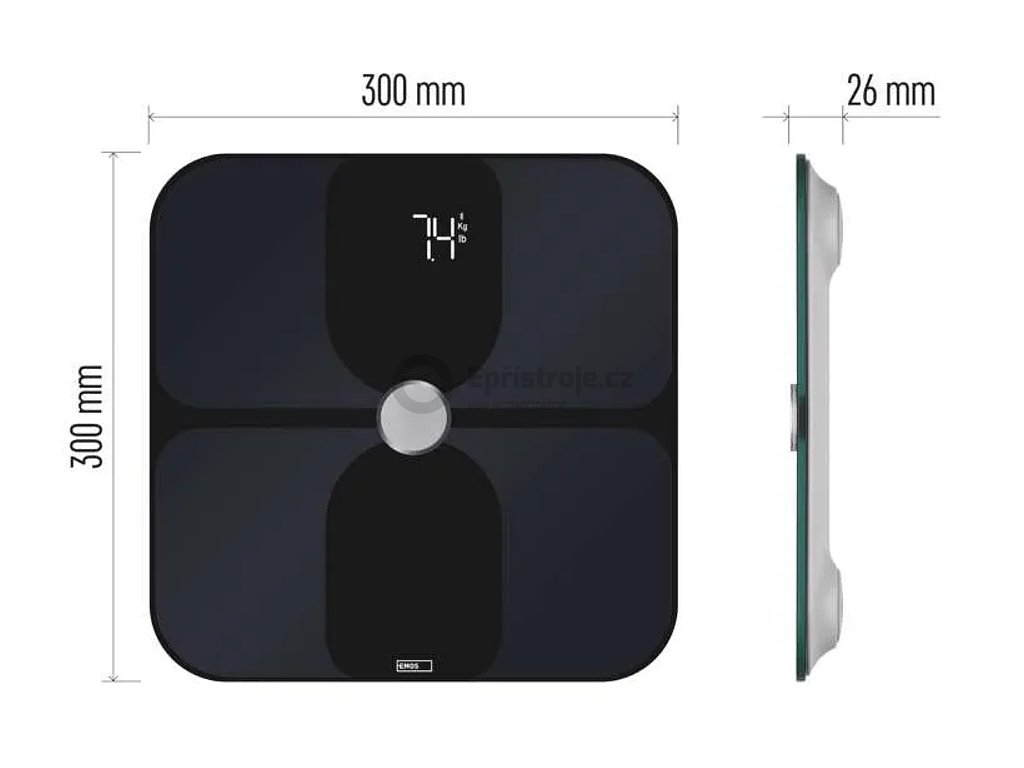 GoSmart digitální osobní váha Emos EV112; podpora Bluetooth; aplikace pro Android a iOS