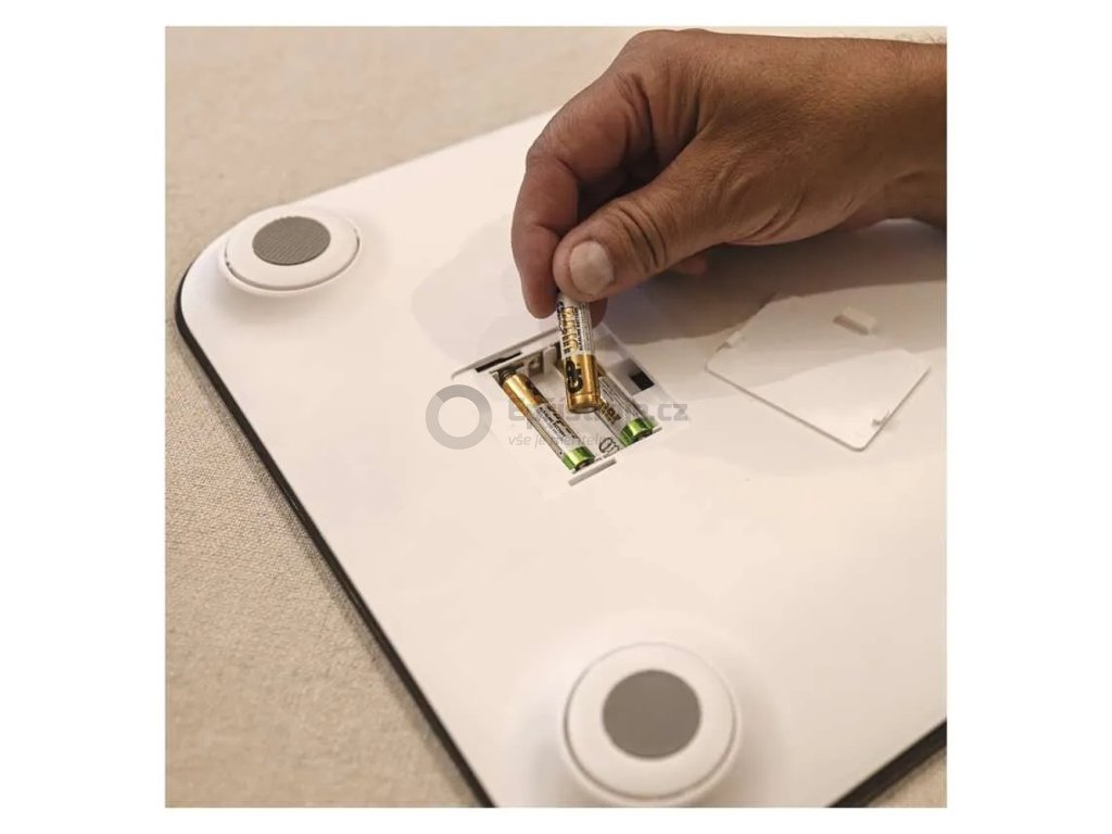 S naší chytrou váhou se můžete pustit do měření své hmotnosti a sledování kondice okamžitě po rozbalení. Součástí balení jsou tři 1,5V AAA baterie, které stačí vložit do váhy a ta je ihned připravena k párování s mobilní aplikací.