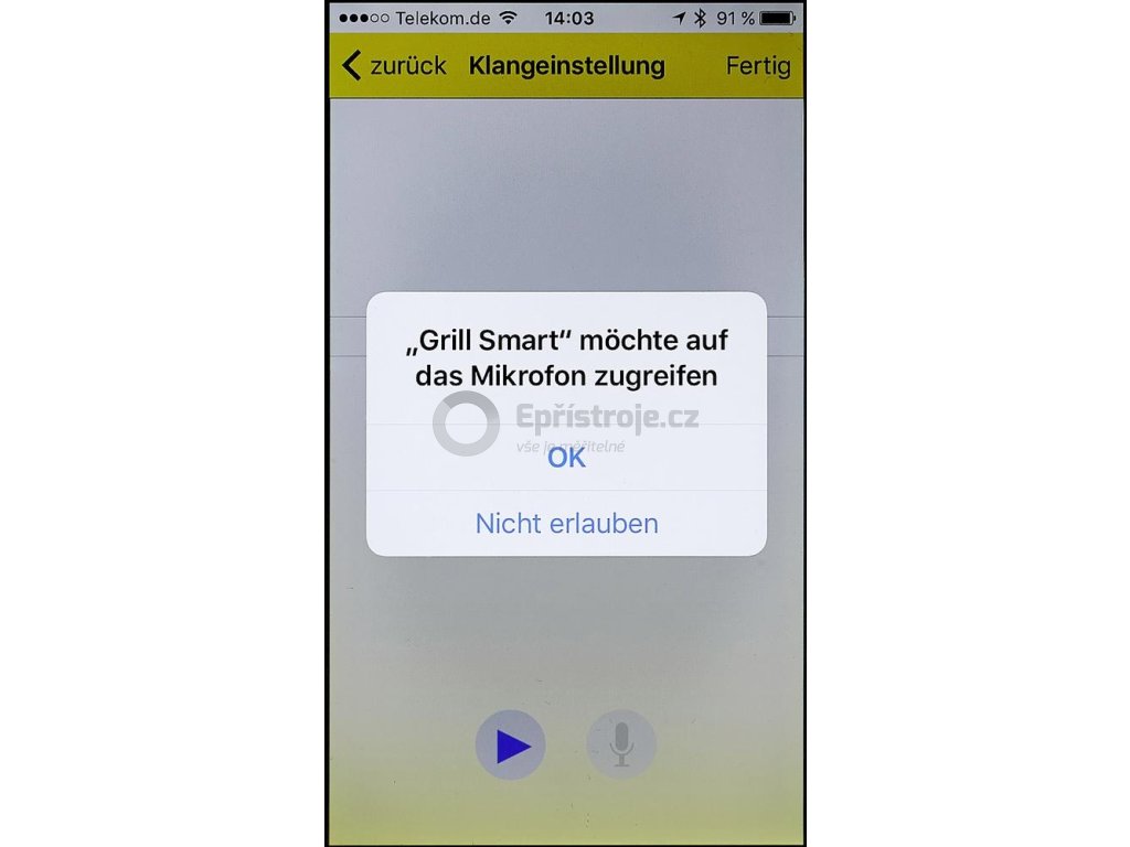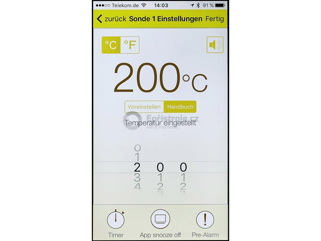 Obsluha a programování pomocí aplikace "Grill Smart". Aplikace může být nainstalována v zařízení Smartphone nebo tabletu s operačním systémem Android nebo Apple iOS. Spojení mezi zařízením a teploměr pomocí Bluetooth® 4.0 . Můžete si vybrat přednastavené teploty nebo si je nastavit podle sebe. Lze nastavit i dva časovače.