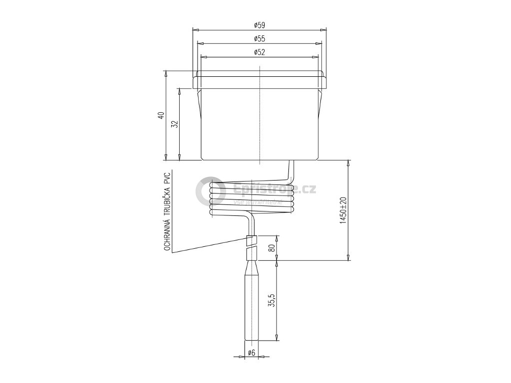 - Montáž teploměru se provádí nasunutím hlavice do otvoru dle rozměrového náčrtku a umístěním teploměrového čidla do měřeného prostředí nebo do jímky