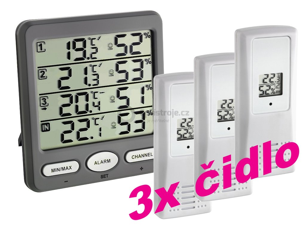 - 3x Bezdrátový senzor teploty-vlhkosti s displejem TFA 30.3208.02