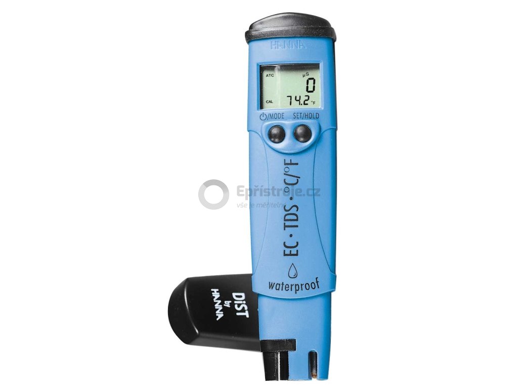 Skupina Dist ® testerů je široce používána pro sledování EC / TDS v pitné vodě, při úpravě vody, reverzní osmóze, při provozu chladicích věží, pro kontrolu odpadních vod, v laboratořích, zemědělství, bazenářství, akvaristice, hydroponii a tiskařském průmyslu. Tento tester má vyměnitelnou grafitovou elektrodu, nastavitelný TDS poměr, měření ve ° C nebo ° F, automatickou teplotní kompenzaci (ATC) s nastavitelnou ß, indikátor stavu baterie, indikátor stability, automatické vypnutí a automatickou kalibraci. Grafitová vodivostní elektroda je odolná proti zanášení usazeninami solí ze vzorku. Vodotěsný, plave na hladině Vysoká přesnost Automatická kalibrace a teplotní kompenzace Automatické rozpoznání kalibračních roztoků Funkce HOLD (indikace stabilizace měření) Vyměnitelná elektroda BEPS (prevence chyby v důsledku slabých baterií) Kompaktní a robustní provedení do provozu